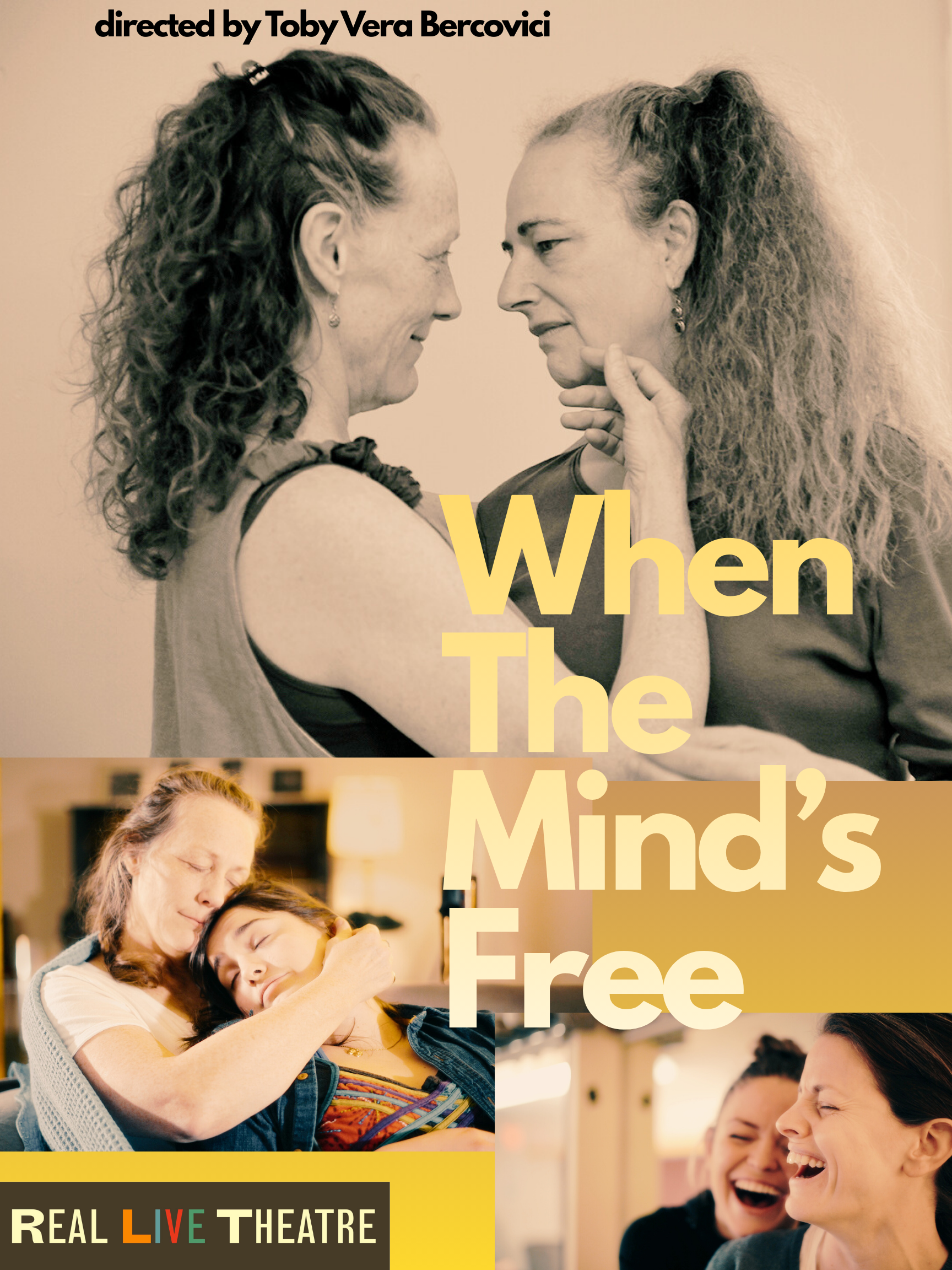 When the Mind’s Free is one of the first pieces of theatre (to our knowledge) to feature an LGBTQ+ family dealing with the impacts of Alzheimer’s, as it follows the story of married couple Colleen and Sharon (inspired by Lear and Fool, respectively) and their three daughters, Gwen (Goneril), Rowan (Regan), and Delia (Cordelia). As Colleen’s former self begins to vanish, erased by Alzheimer’s, each family member struggles with letting go of the past and finding peace in the present.